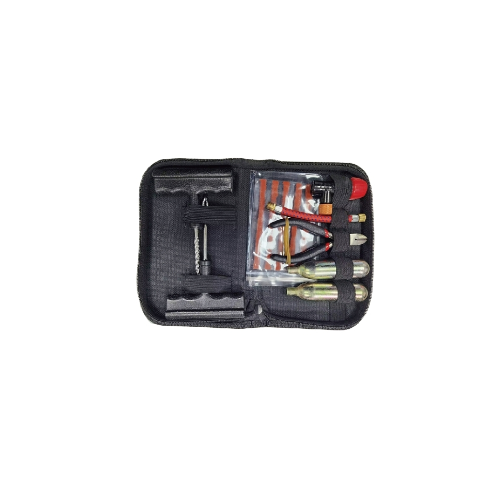 Designed specifically for emergency tire puncture repair. Includes a CO2 cartridge inflation system, tire plugs, and all necessary tools to fix a flat and reinflate the tire within minutes.