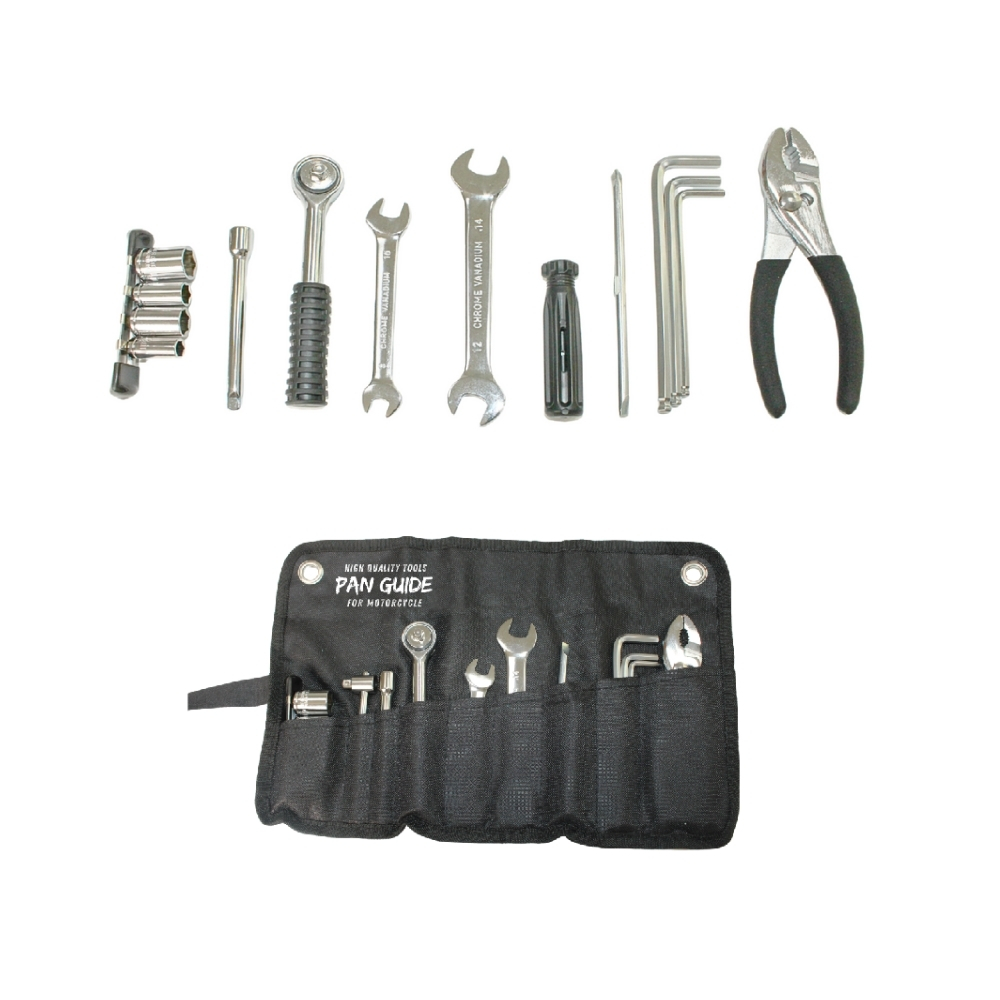 This 15 - piece motorcycle repairing tool set comes with a roll - type tool bag. It contains various practical tools such as sockets, wrenches, screwdrivers, hex wrenches, slip joint pliers, etc., which can meet the basic tool needs of daily motorcycle maintenance and repair, making the repair work easy and efficient.