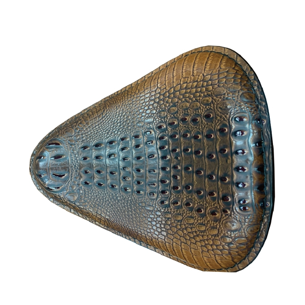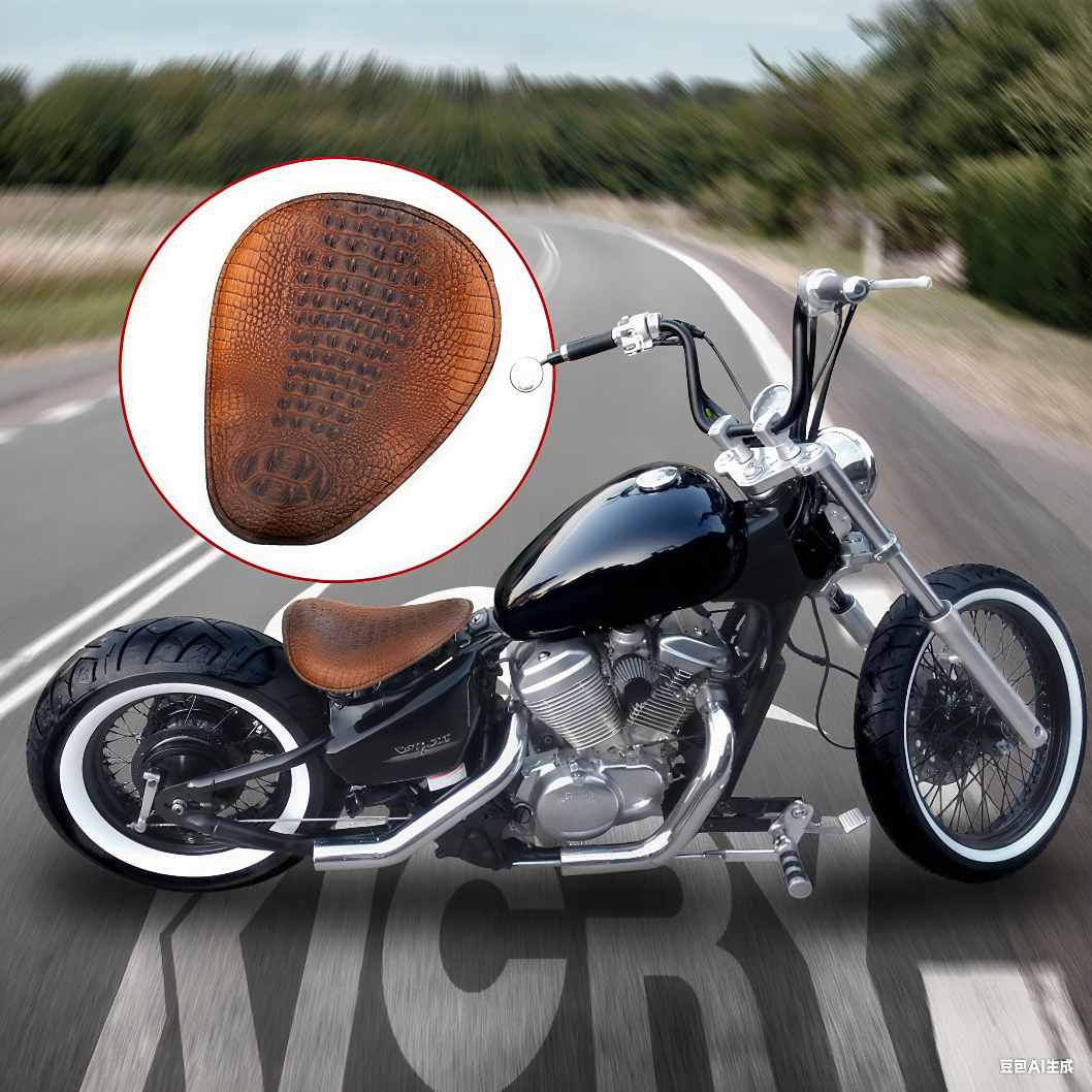 front driver rider cushion solo seat; made of waterproof PU leather; with a crocodile embossed design.