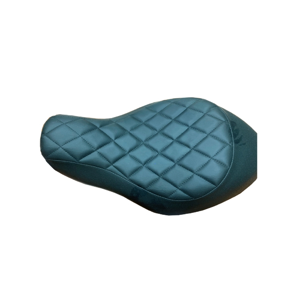 This is a Harley solo seat. It showcases a diamond checkered pattern, presenting a distinctive and fashionable appearance. In classic black, it's a timeless hue that effortlessly coordinates with various motorcycle styles. Designed to offer riders a comfortable seating experience.